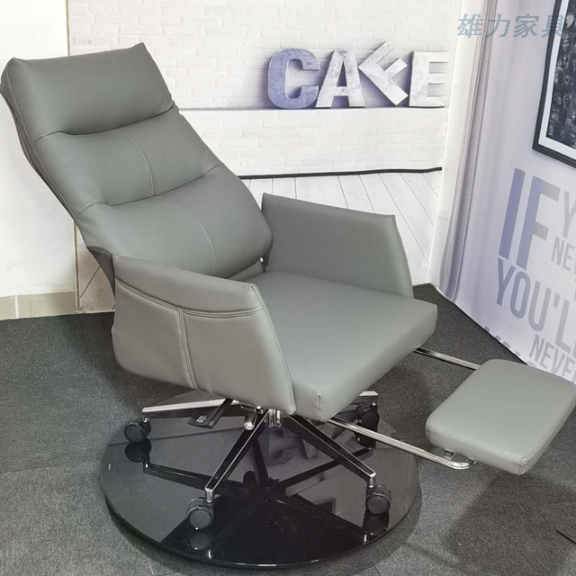 优质腊帕纹西皮饰面,40密度高弹力原生海绵,木板采用E1级环保板材,连体扶手包皮,170度可躺办公室午休设计,∮350钢制方锥脚,85#电镀汽杆,黑色PU专用轮,配置可伸缩午休脚踏。